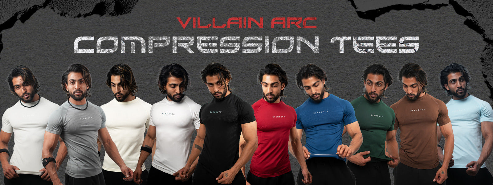 DESIGN: Step into your Villain Arc with a compression tee built for presence and performance. Engineered with physique-enhancing cutlines, sculpted sleeve length, and dense 300 GSM stretch fabric, this tee defines your chest, arms, and taper. The silicone grip at the hem keeps the fit locked in during every movement, while the minimalist tonal branding keeps the focus exactly where it should be — on you.
